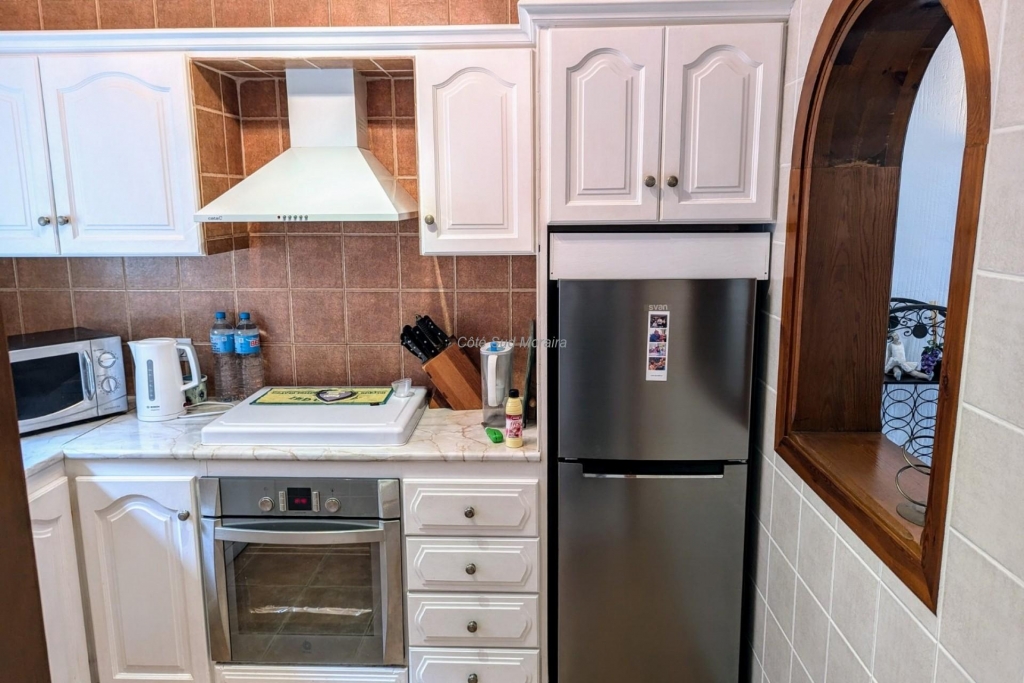 - Built: 1990 - Bedrooms: 3, one with large dressing room- Bathrooms: 2, one with linen cupboard- Glazed naya- Open terrace- Well maintained and recently painted by the present owners- Furniture included- Air conditioning H/C in living/dining room and 1 upstairs bedroom- Heated towel radiators in both bathrooms- Double glazed windows with shutters and mosquito screens- Roof terrace with barbecue and wonderful views- Community fees 640€ per year- Annual taxes 406.82€ (total of property tax and rubbish tax)