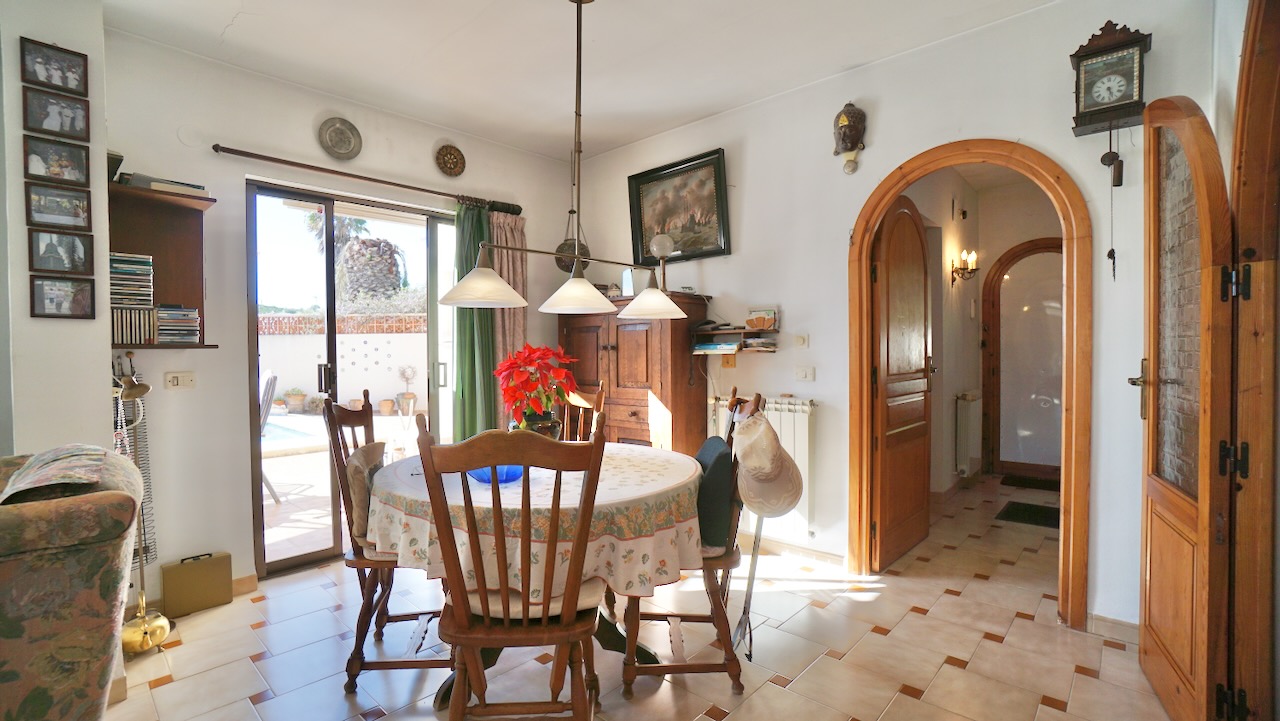 From the dining area there is a direct access to the terrace and the 8 × 4 metre swimming pool.