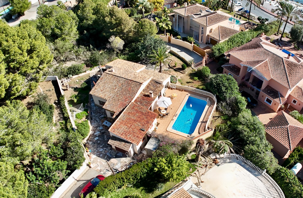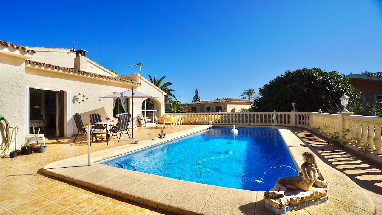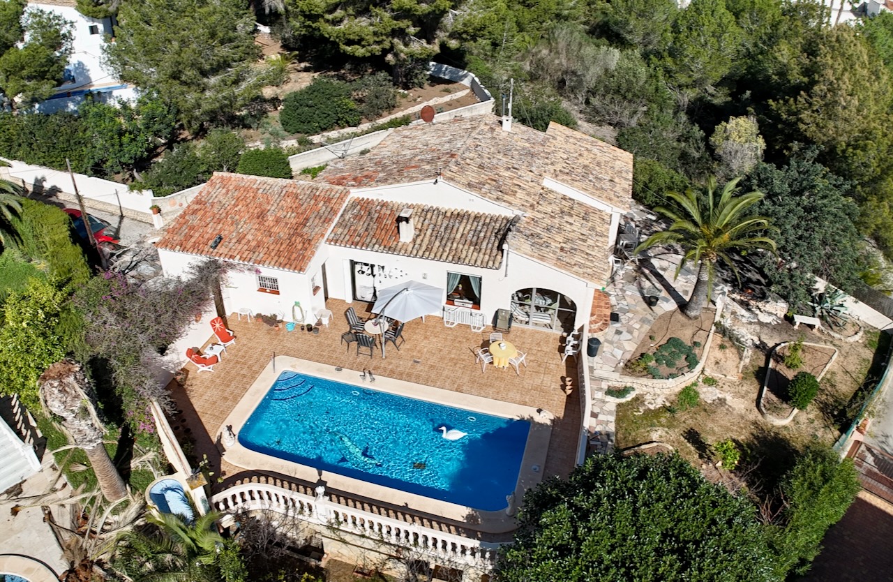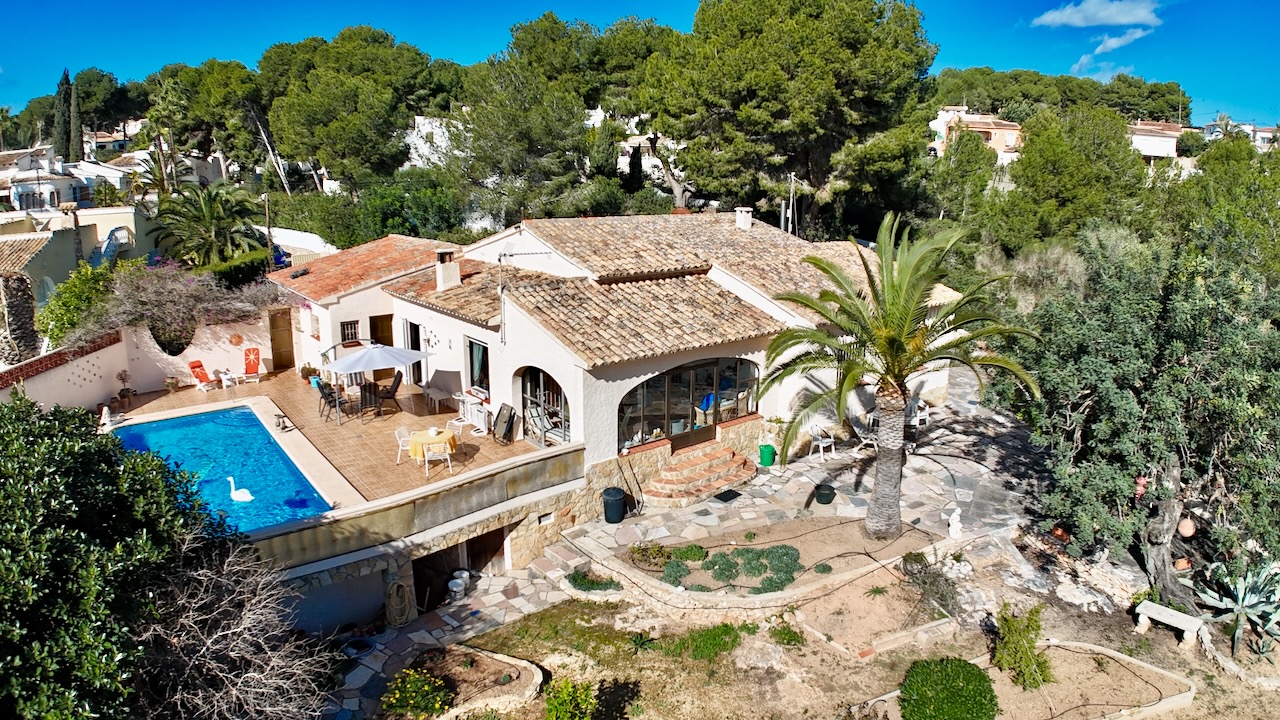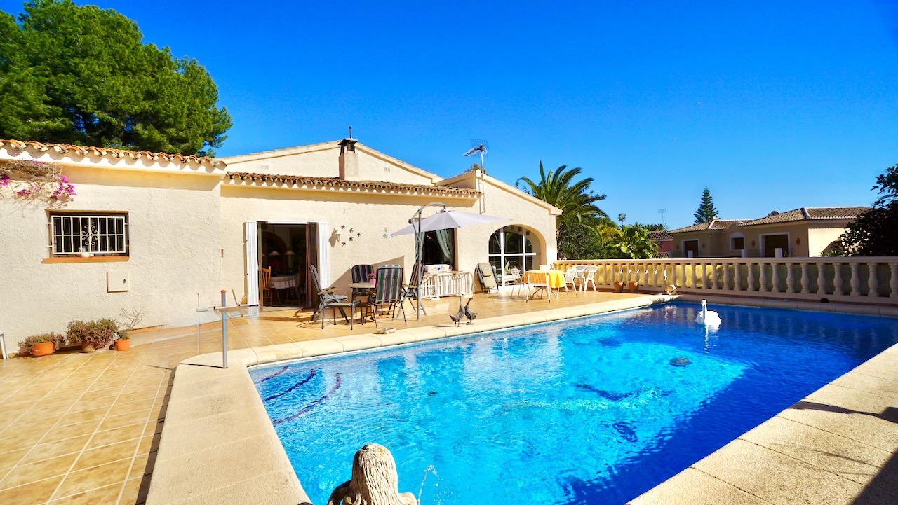 Single-storey villa with swimming pool, glased-in Naya and Sea Views This attractive single-storey villa is set on a flat plot just 150 metres from the sea and within a 15-minute walk of the Centre of Moraira.